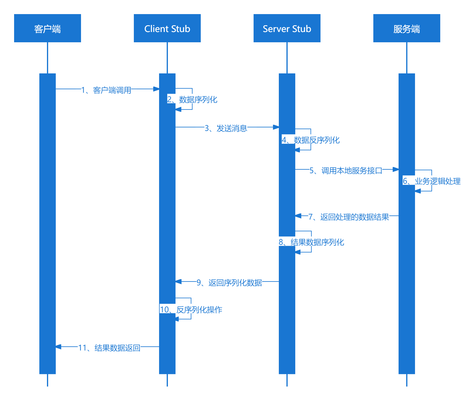 本地服务执行具体业务逻辑并将处理结果返回给服务端存根(server stub)。