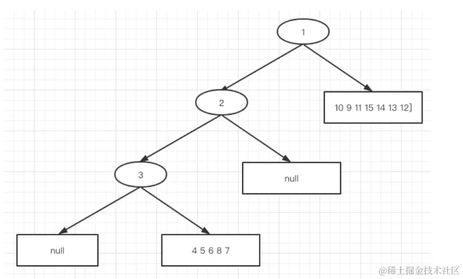 第一轮:根据前序和中序划分,可以得到根节点为 1 ,然后可以得到第一轮树的结构