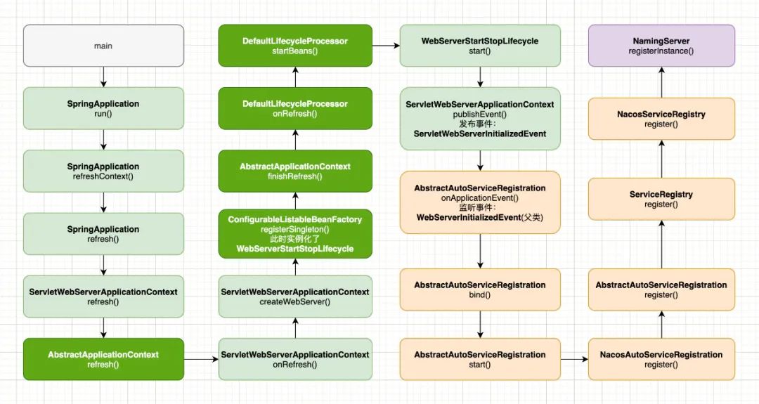 上面的描述省略了一些部分细节,但整个流程基本上就是SpringBoot在启动时发布了一个事件,Spring Cloud监听到对应的事件,然后进行服务的注册。