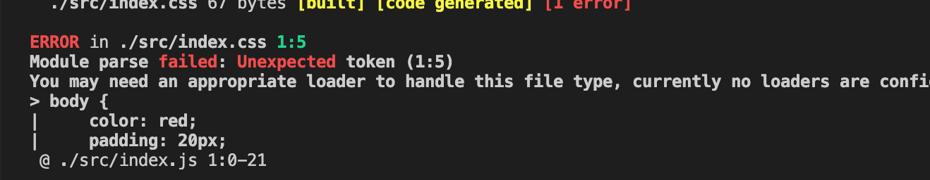webpack 无法处理 CSS 语法,此时我们执行打包命令 控制台会报 “请使用合适的loader来处理这个文件类型”
