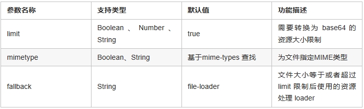 一般情况下,当资源文件大小小于 2Kb 时,我们需要将资源路径转换为 base64 的格式将资源打包到 bundle 中,这样可以减少一次网络请求,当一个页面中引入多个资源文件时可以明显减少请求次数,但这种方式带来了另外一个问题,如果资源文件体积较大,就会导致 bundle 的体积增大,体积大的情况下网络请求时间变长,会导致页面白屏时间变长,非常影响用户体验。所以在处理资源文件时,一般会加上 limit 配置,文件资源体积超过配置的大小后,更改资源文件的处理方式,默认使用 file-loader 来处理。