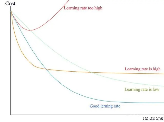 我们没有使用固定的学习率,而是定期降低学习率。超参数包括学习率下降的频率和幅度。例如,你可以在每十万次迭代时减少 0.95 的学习率。要调整这些参数,我们需要监控成本,以确定参数下降地更快但又不至于过早平缓。